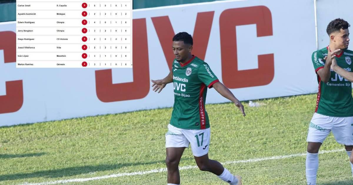 Con seis anotaciones aparecen Rony Martínez de Real Sociedad, Carlos Small de Real España y Agustín Auzmendi de Motagua.