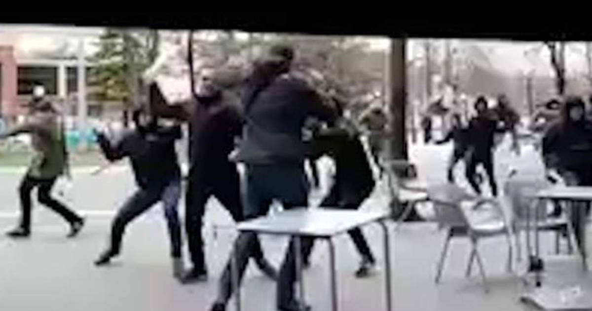 Un grupo de 40 a 50 hombres, con el rostro cubierto, provocaron un altercado atacando a hinchas rivales que estaban sentados en la terraza de un bar.