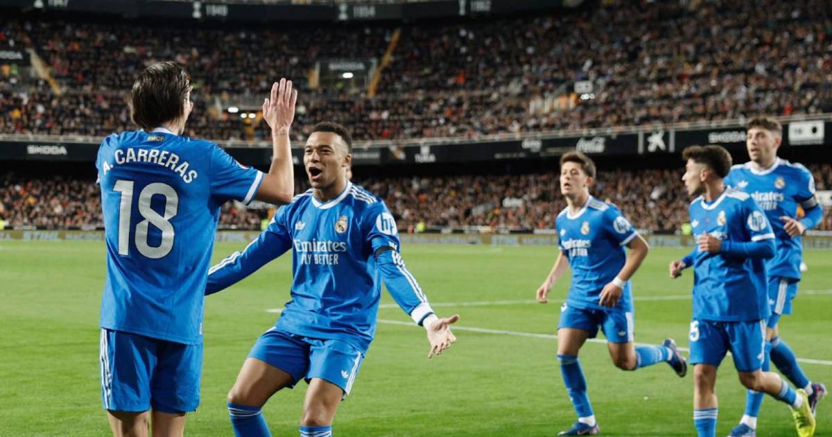 Valencia, España.- El Real Madrid se impuso este domingo por 0-2 al Valencia en un encuentro plano por parte de los dos equipos, en el que una jugada individual de Álvaro Carreras en el minuto 65 encarriló el triunfo visitante y en el que Kylian Mbappé sentenció en el añadido al Valencia de un Carlos Corberán muy criticado por Mestalla.