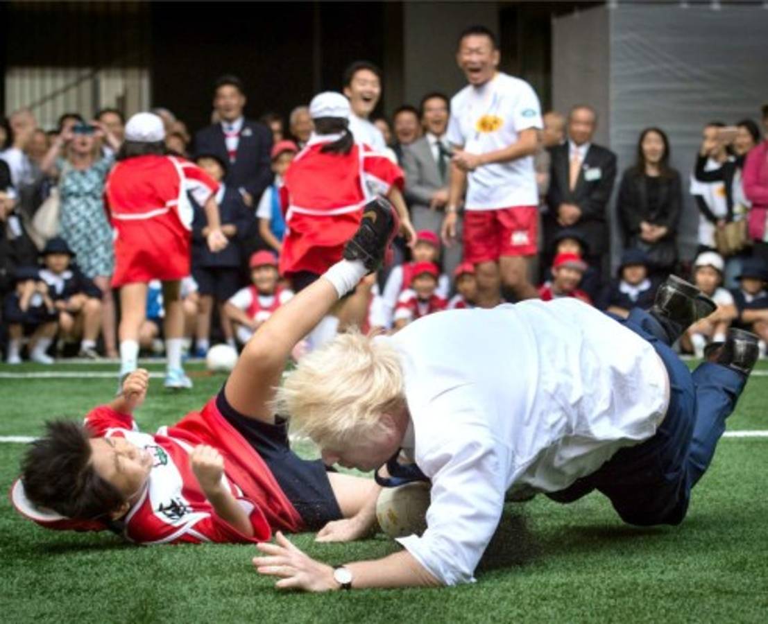 Boris Johnson, alcalde de Londres arrolló a un niño llamado Toki Sekiguchi en un partido de rugby callejero en Tokio, Japón, este día. El edil londinense fanático de los deportes está en el país del sol naciente en una misión comercial.