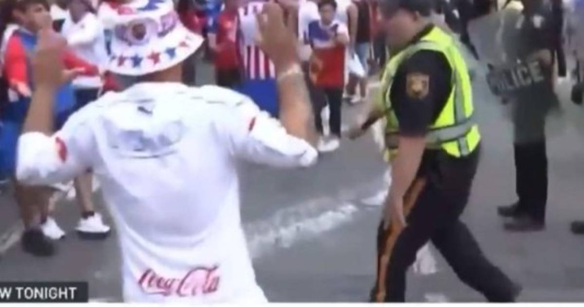 'El caos ocurrió esta noche en el Red Bull Arena en Harrison, Nueva Jersey, luego del partido de fútbol a doble cartelera. Videos exclusivos muestran como inició el trifulco a las afueras del estadio y podemos observas cientos de policias tratando de controlar una multitud furiosa. Al menos una persona resultó herida, pero según lo que hablamos con una de los testigos esto 'pudo ser aún peor'', dijo una de las presentadoras del noticiero de la cadena NBC al informar sobre lo ocurrido tras el clásico del fútbol hondureño.LEA TAMBIÉN: Diego Vázquez sobre zafarrancho con Troglio: 'Pedro quiso golpear a un aficionado'