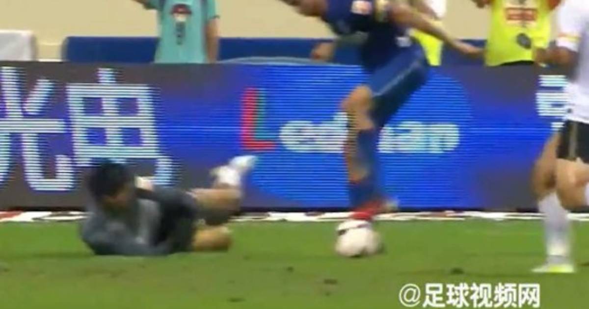 Al llegar al área, hizo una pared, pero el campo, que estaba húmedo, lo traicionó y se resbaló ante la salida del arquero Liu Dianzuo.