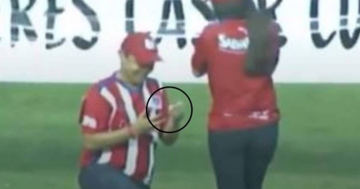 TEGUCIGALPA, HONDURAS.-Un hondureño le pidió matrimonio a su novia la tarde de este domingo en el entretiempo de la final de vuelta entre