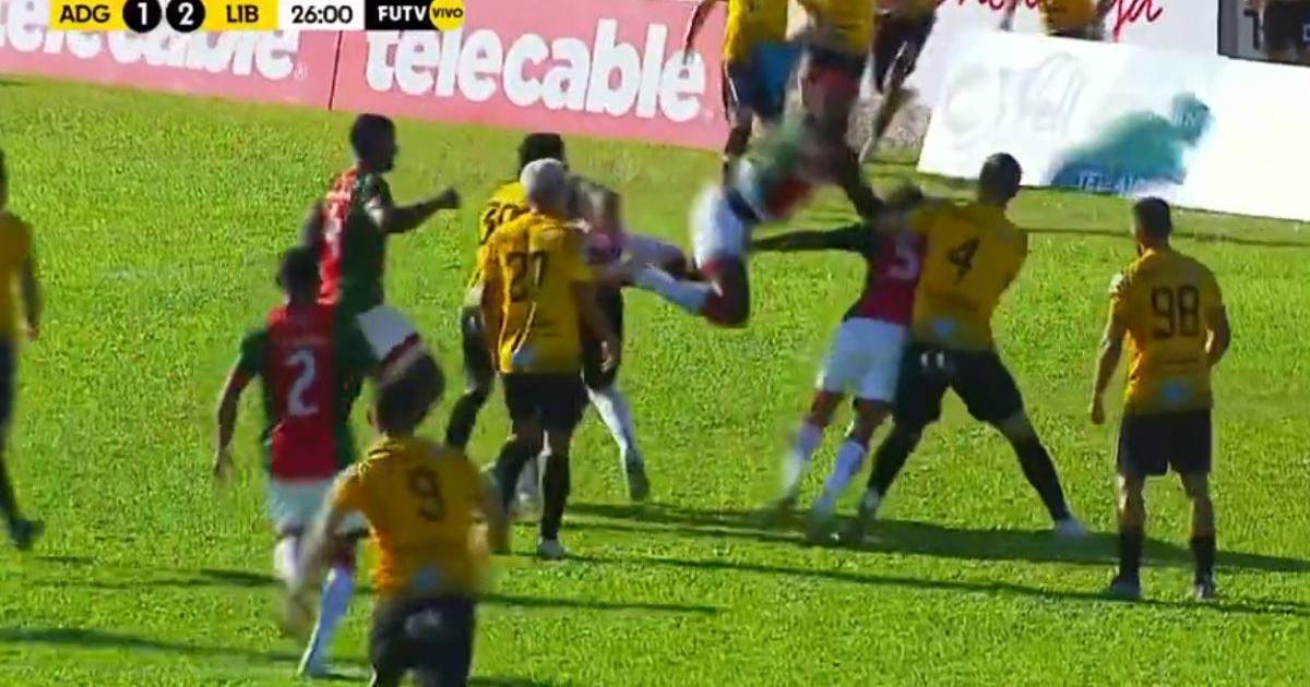 El penoso momento fue captado por la televisora encargada de transmitir el juego. Manotadas, agarrones y patadas por doquier se observan en la grabación que rápidamente se volvió viral en las redes sociales.