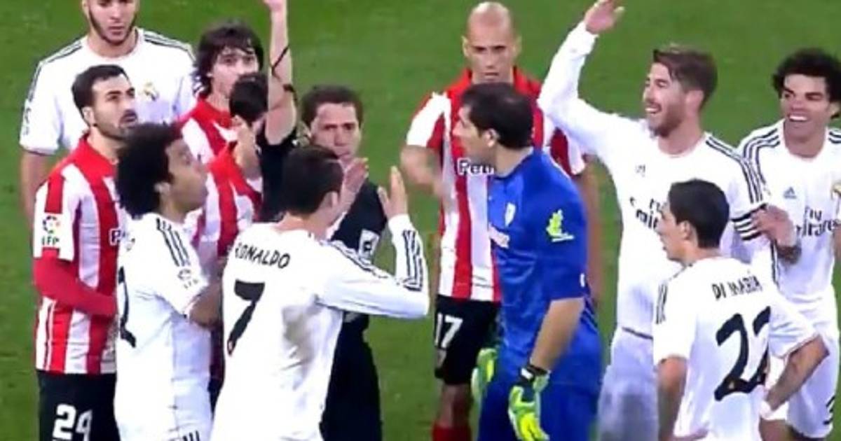 El colegiado Ayza Gámez, a instancia del asistente, mostró cartulina amarilla a Iturraspe y roja a Cristiano Ronaldo.