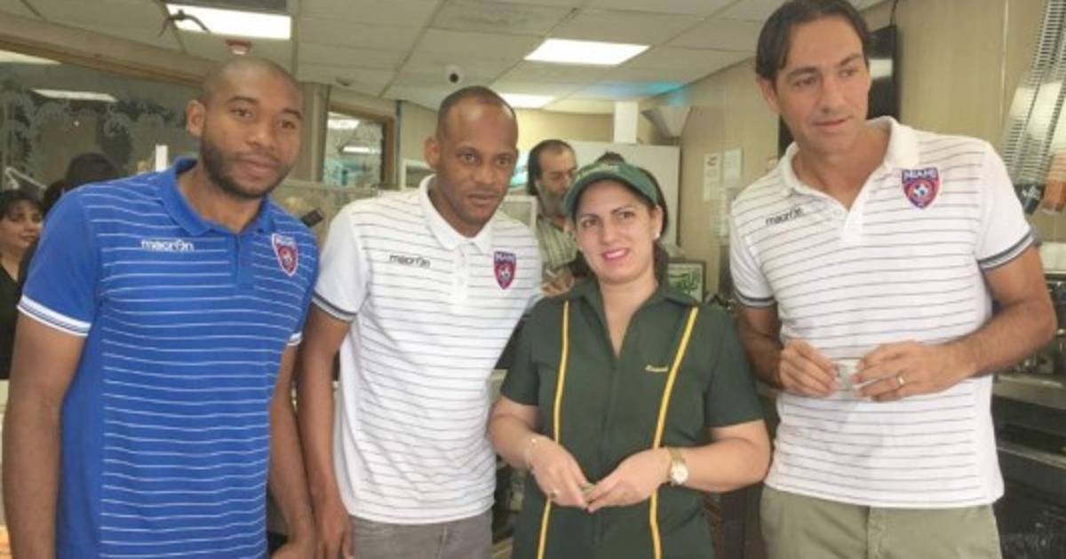 Palacios participó en una dinámica con otros jugadores del Miami FC quienes por un momento se convirtieron en meseros del famoso café 'Versailles de Miami'.