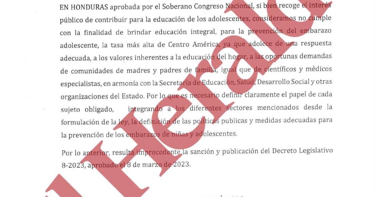 Veto presidencial, Ley de Educación Integral para la Prevención de Embarazos en Adolescentes