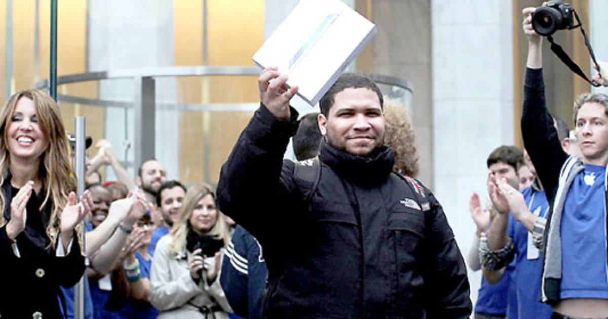 '¡Estoy emocionado, lo tengo! Ha estado aquí desde hace 36 horas', dijo al salir de la tienda, con su iPad bajo el brazo.