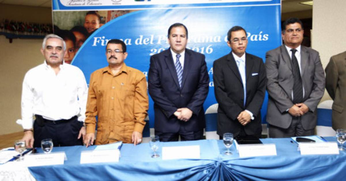 El representante del PMA en Honduras, Miguel Barreto fue el encargado de firmar los acuerdos mediante los cuales se ejecutará el Programa de País 2012-2016, junto a los ministros de Planificación, Julio Raudales; de Salud, Arturo Bendaña; de Educación, Alejandro Ventura; y el titular del Instituto de Conservación Forestal (ICF), Trinidad Suazo.