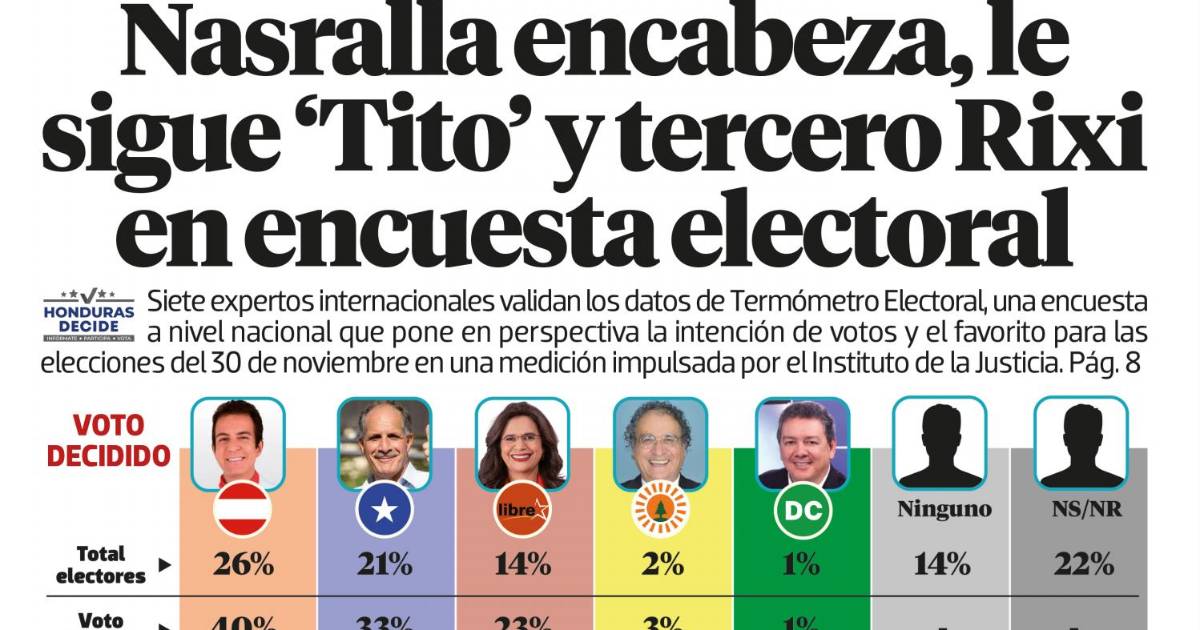 Nasralla encabeza, le sigue "Tito" y tercero Rixi en encuesta electoral