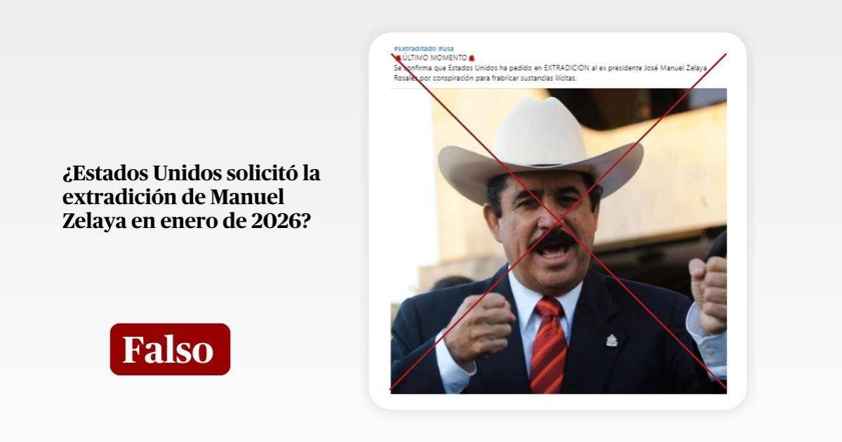Por lo tanto, la información que circula en redes sociales sobre una supuesta solicitud de extradición de Manuel Zelaya por parte de Estados Unidos es falsa.