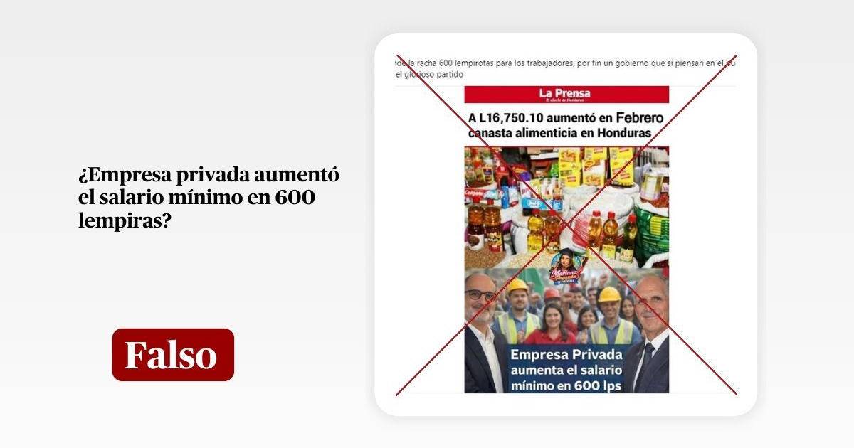 “Empresa Privada aumenta el salario mínimo en 600 lps”, dice textualmente en el mensaje sobrepuesto en una imagen de Facebook compartida desde el 7 de marzo de 2026.