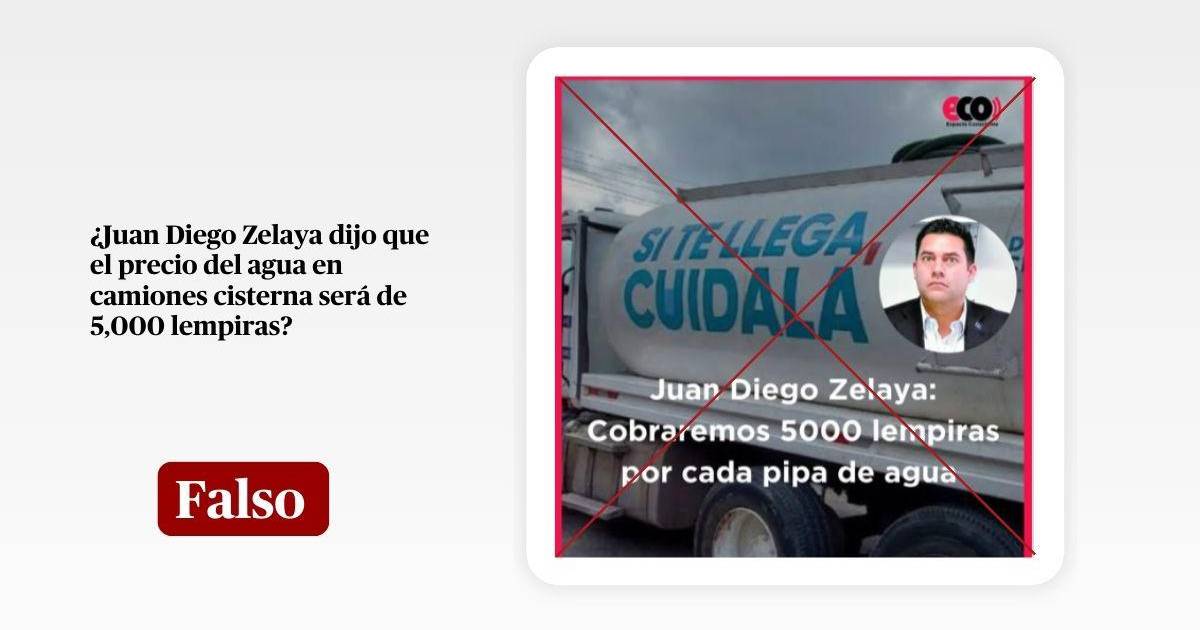 “Juan Diego Zelaya: Cobraremos 5000 lempiras por cada pipa de agua” dice literalmente el texto sobrepuesto en una imagen divulgada en Facebook, compartida decenas de veces desde el 5 de marzo de 2026.