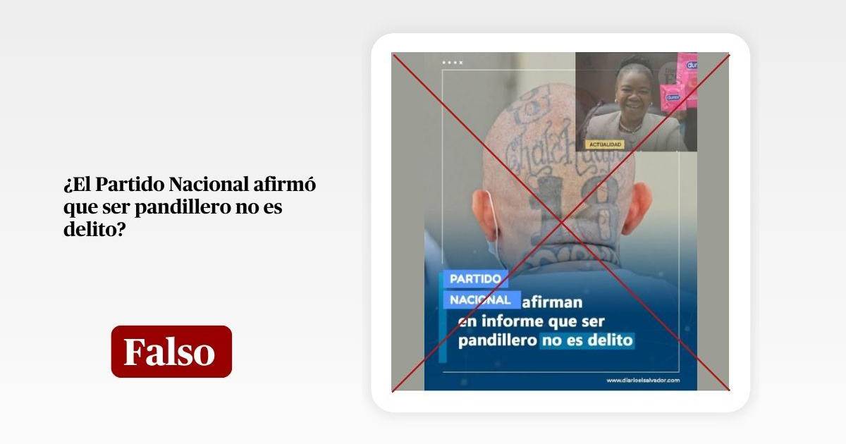Por lo tanto, es falso que el Partido Nacional haya afirmado que ser pandillero no es delito. La información fue descontextualizada y modificada a partir de una publicación de Diario El Salvador en redes sociales sobre agrupaciones ilícitas.