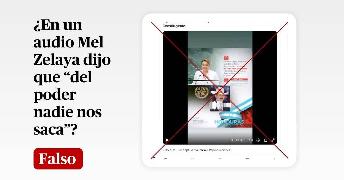 “¡Se filtra audio de Mel Zelaya!. Después del discurso de Xiomara en la ONU, en que revive las consultas populares. El gobierno estaría llamando próximamente a una Asamblea Nacional Constituyente”, dice textualmente una publicación en X/Twitter que ha sido compartida decenas de veces desde el 26 de septiembre de 2024.