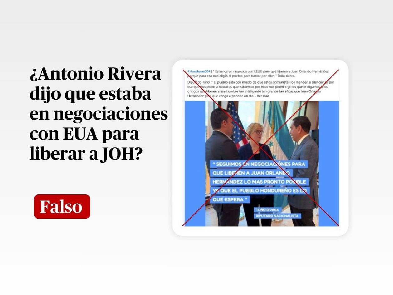 En conclusión, es falso que Antonio Rivera dijo que estaba en negociaciones con Estados Unidos para liberal al expresidente de Honduras, Juan Orlando Hernández.