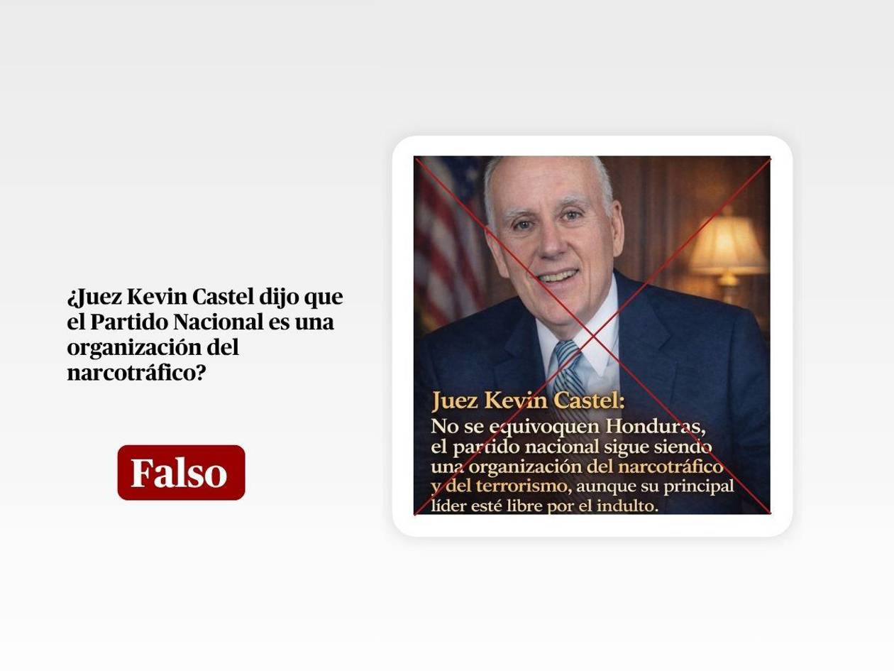 Tegucigalpa, Honduras.- En redes sociales circula un arte gráfico que atribuye al juez federal Kevin Castel, del Distrito Sur de Nueva York, la frase de que el Partido Nacional “sigue siendo una organización del narcotráfico y del terrorismo, aunque su principal líder está libre por el indulto”.