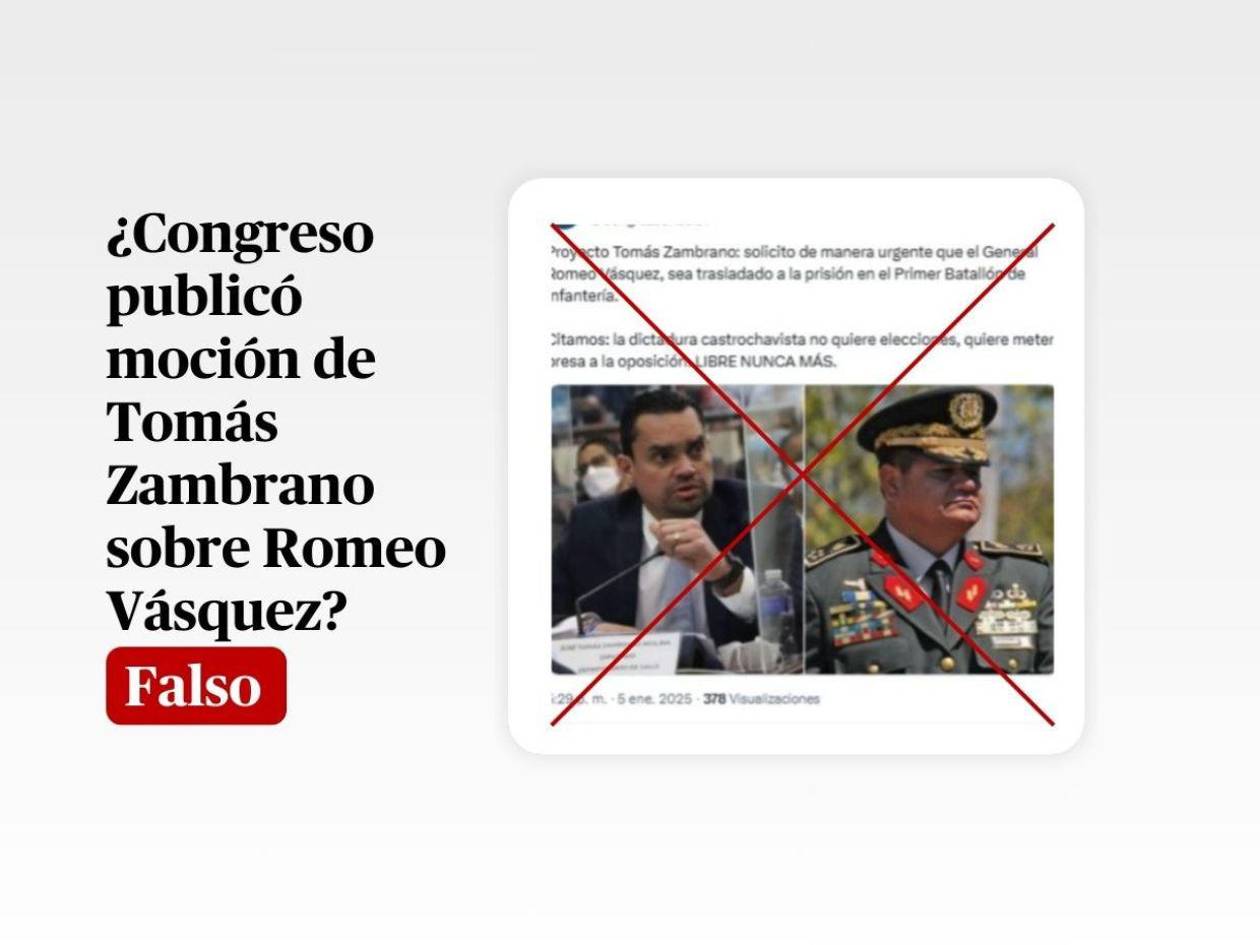 Una búsqueda con las palabras clave “Tomás Zambrano + moción + Romeo Vásquez+ Primer Batallón de Infantería” no condujo a nada.