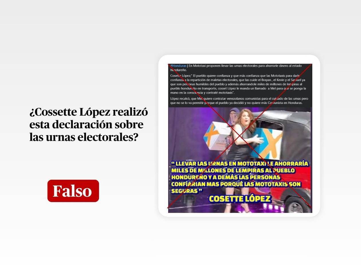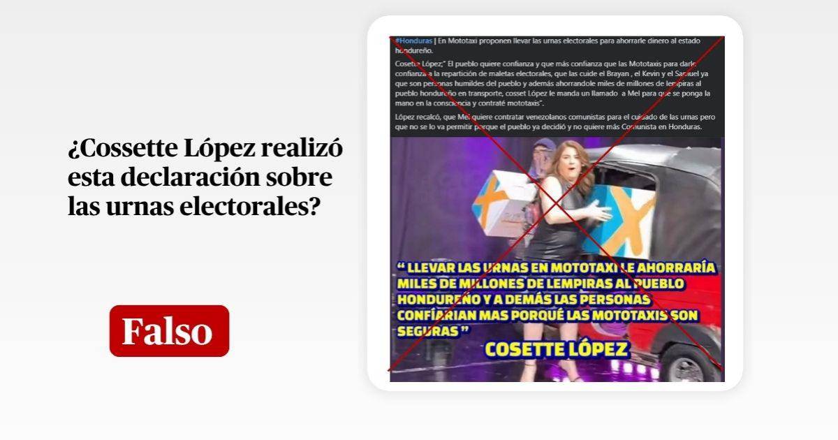 La frase atribuida a Cossette López sobre “llevar las urnas en mototaxi para ahorrar millones de lempiras” es falsa. No existe registro alguno de que la consejera presidenta del CNE haya hecho tal afirmación en medios, redes sociales o fuentes oficiales.