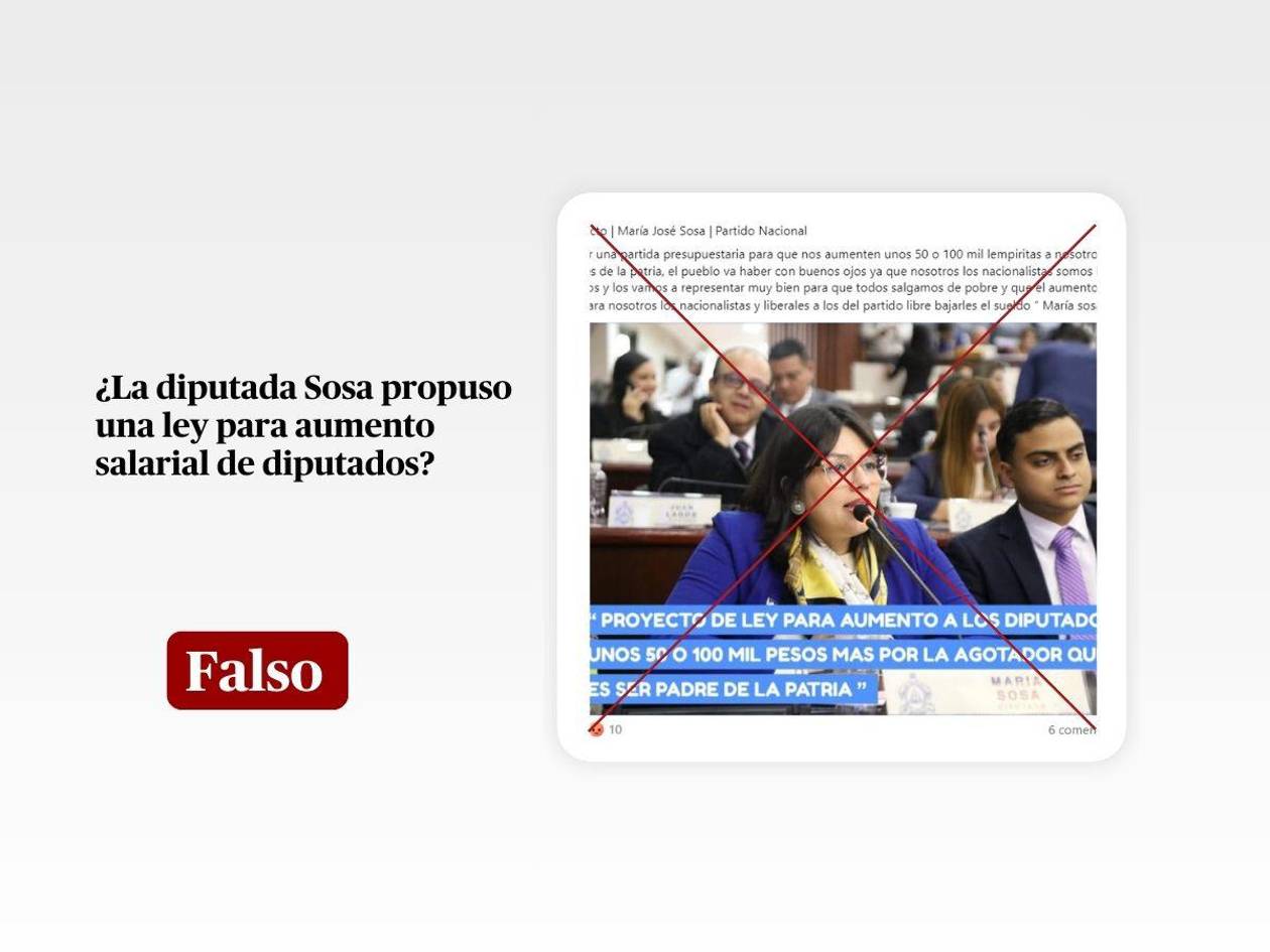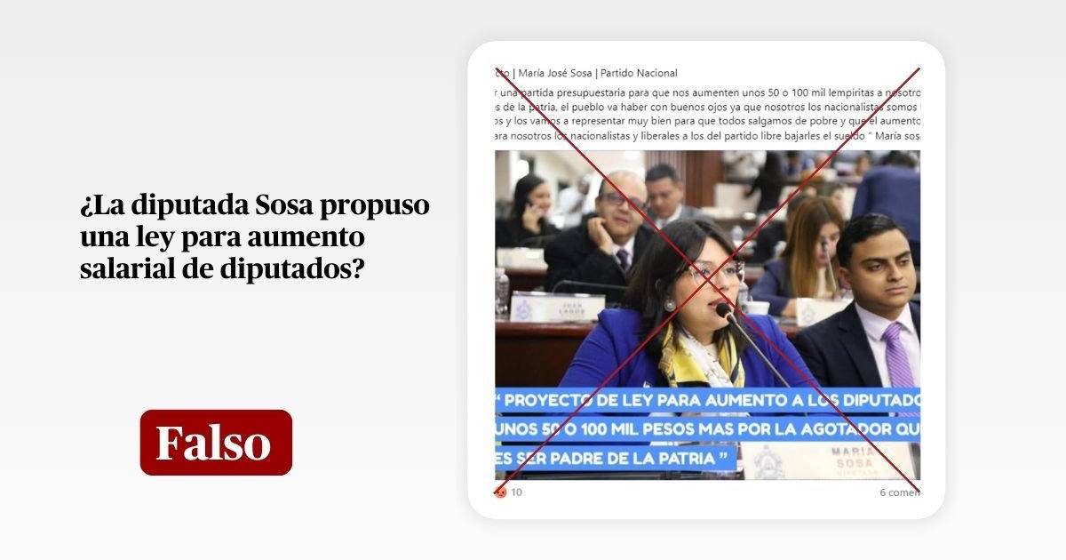En conclusión, es falso que la diputada María José Sosa haya presentado un proyecto de ley para solicitar el aumento de 50,000 o 100,000 lempiras para los diputados.