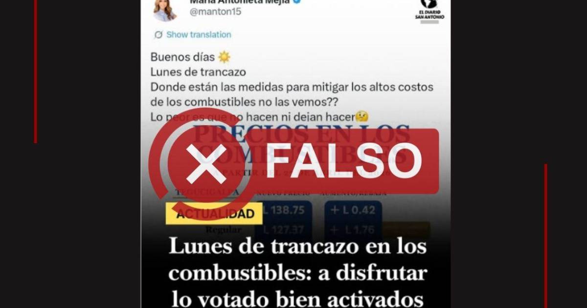 Sin embargo, esto es falso. Una revisión del contenido original evidencia que la publicación fue realizada en junio de 2022, cuando Mejía se desempeñaba como diputada de oposición, y estaba acompañada de una tabla con el resumen de precios de los combustibles entre enero y abril de ese mismo año.