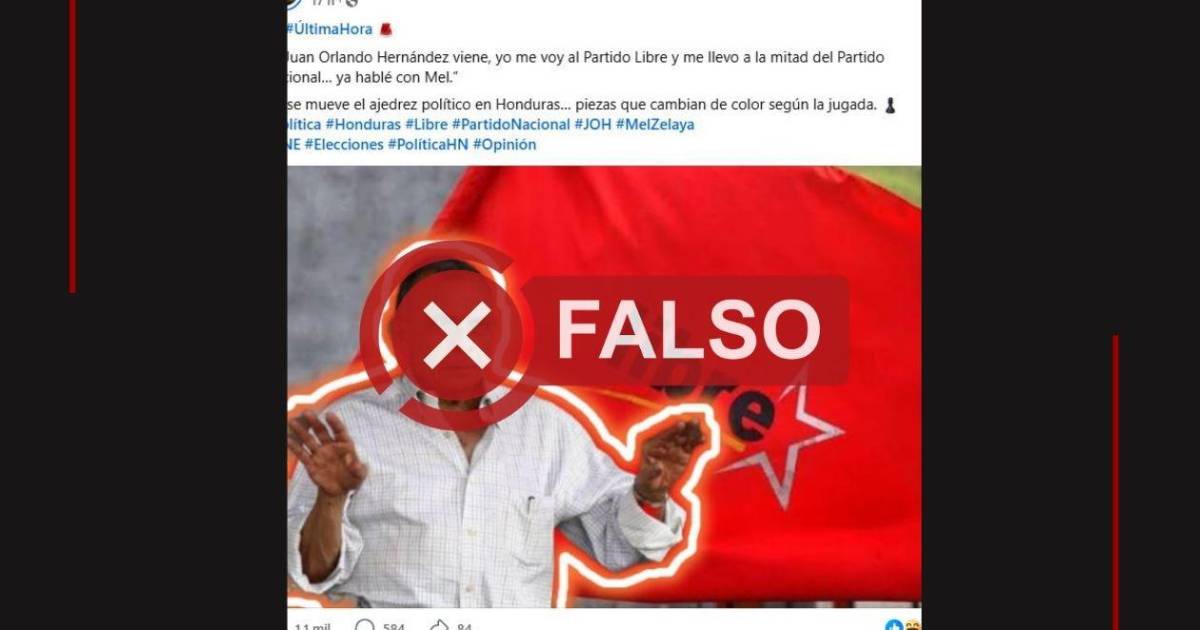 El contenido, compartido decenas de veces desde el 19 de abril, agrega una imagen del exmandatario hondureño entre 2010 y 2014, en la que se observa un fondo rojo.