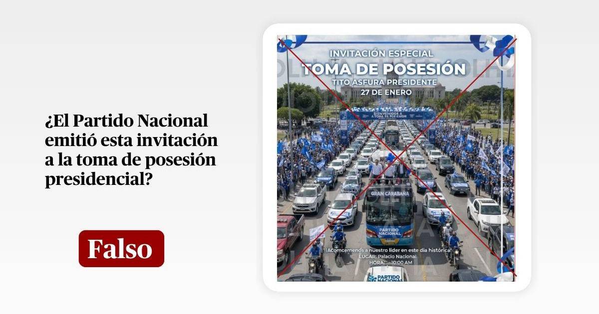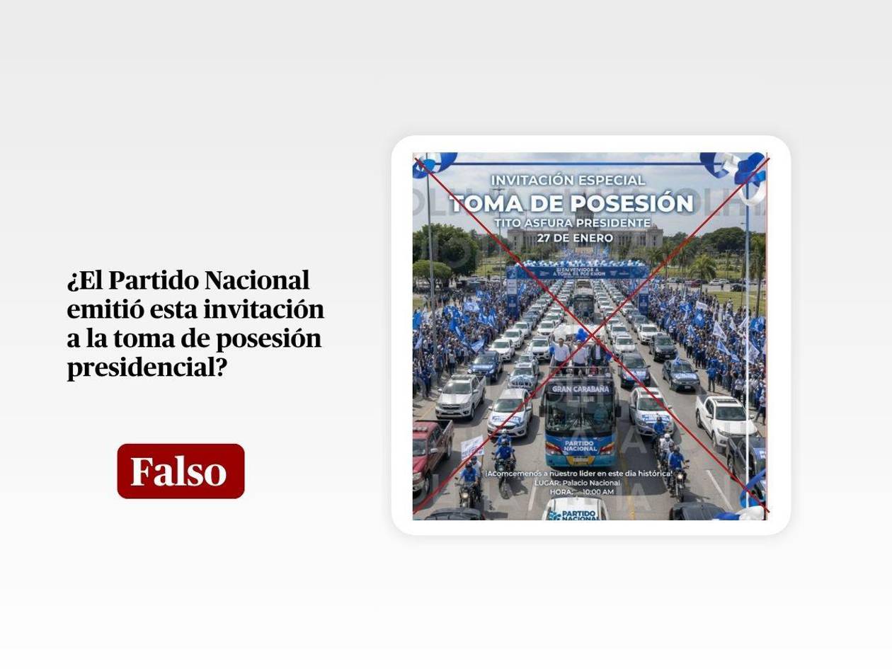 En conclusión, es falsa la invitación que circula en redes sociales para la supuesta toma de posesión de Nasry Asfura. La imagen fue generada artificialmente y una fuente oficial del partido desmintió su autenticidad.