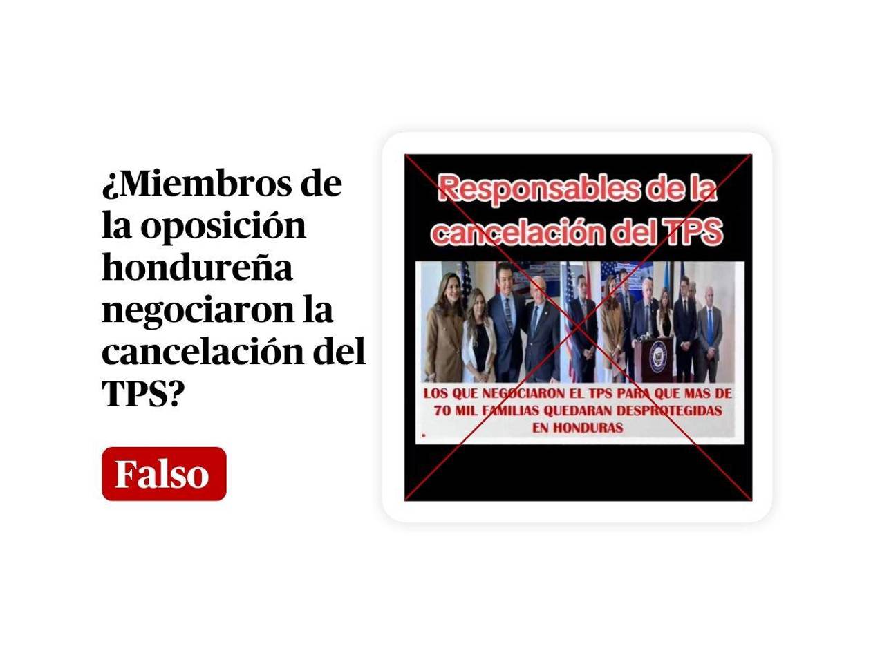 Sin embargo, es falso. Las fotografías fueron sacadas de contexto y en realidad corresponden a una conferencia de prensa del 21 de octubre de 2024, encabezada por la congresista republicana María Elvira Salazar junto a líderes de la oposición hondureña. En el evento se denunció a la administración de la presidenta Xiomara Castro, pero no se mencionó el tema del TPS.