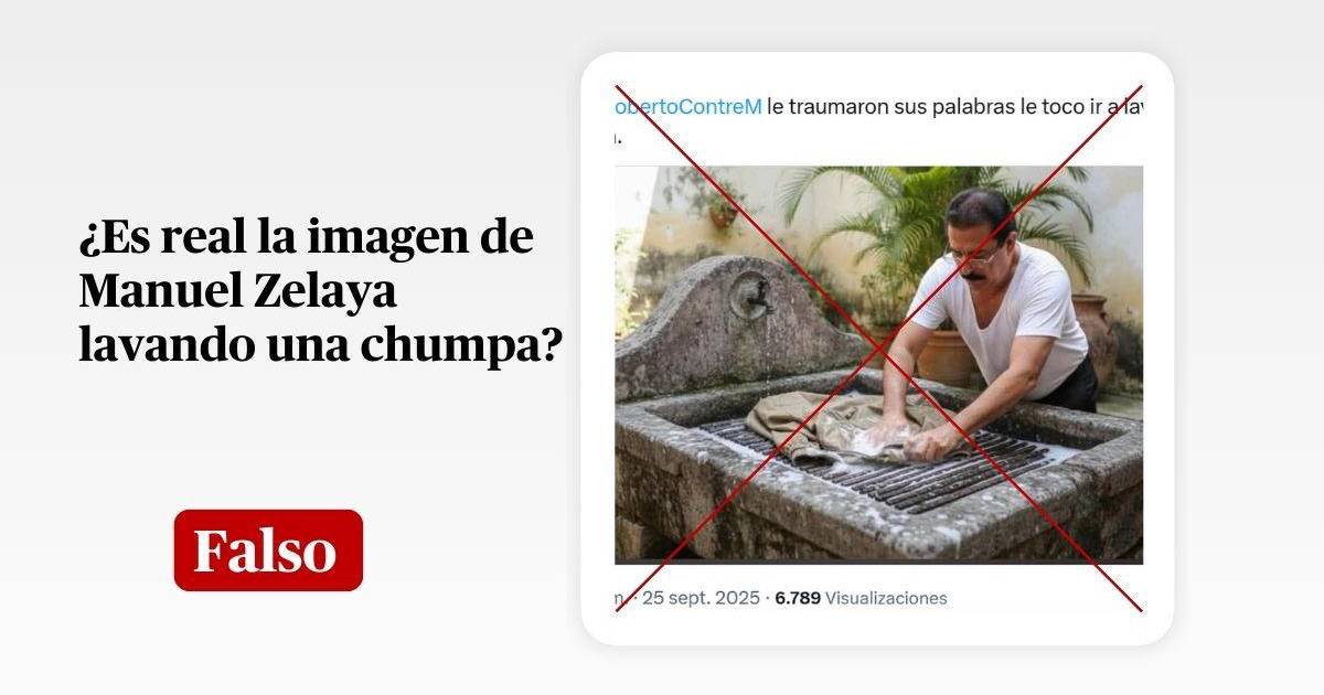 La imagen que muestra al expresidente Manuel Zelaya lavando una chumpa sobre un lavando está creada con inteligencia artificial, corroboró EH Verifica.
