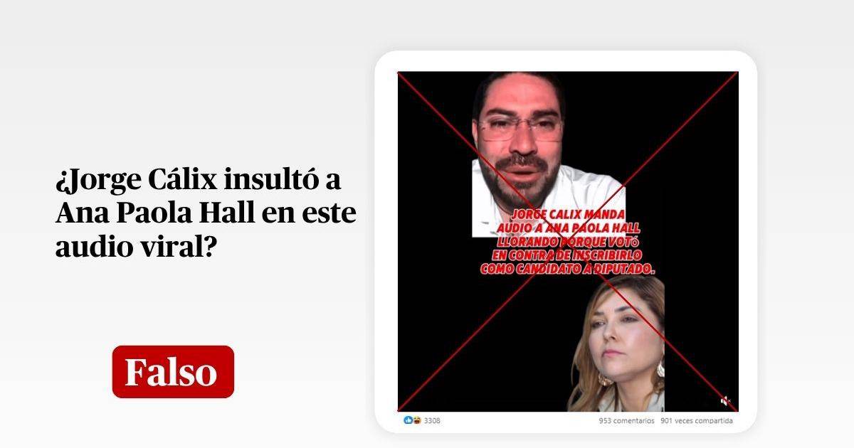 “JORGE CÁLIX MANDA AUDIO A ANA PAOLA HALL LLORANDO PORQUE VOTÓ EN CONTRA DE INSCRIBIRLO COMO CANDIDATO A DIPUTADO””, dice literalmente una publicación en Facebook que ha sido compartida más de 900 veces desde el 13 de octubre de 2025.