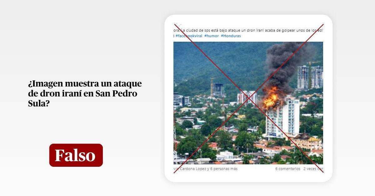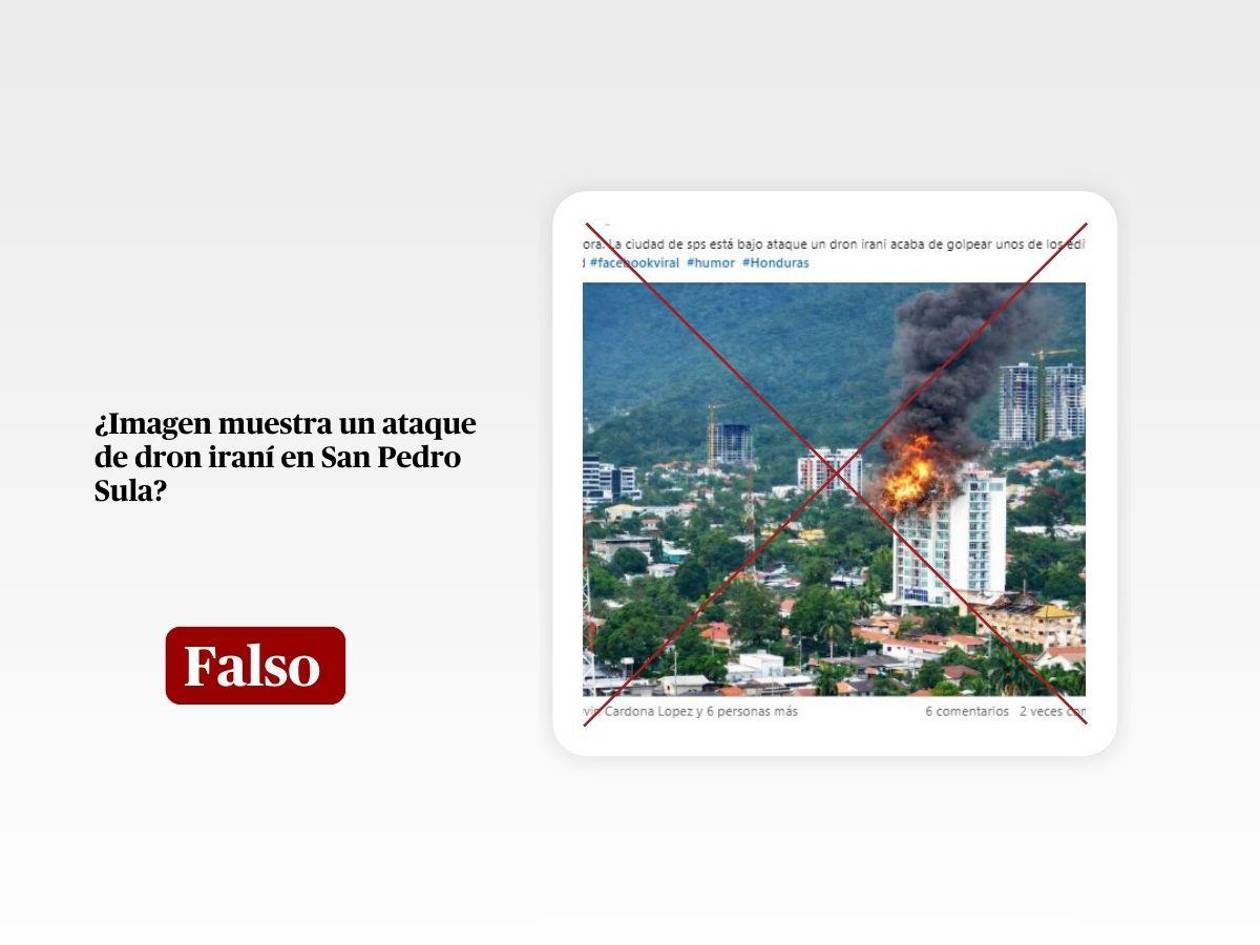 Por lo tanto, es falso que un edificio de San Pedro Sula haya sido impactado por un dron iraní. La imagen difundida en redes sociales es un montaje a partir de una fotografía publicada previamente por una constructora.