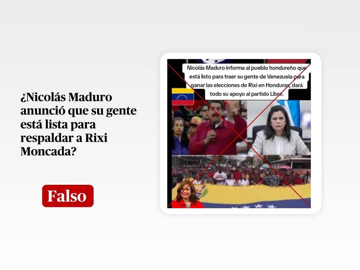 Por lo tanto, es falso que Nicolás Maduro haya dicho que tiene a “su gente” lista para enviar a Honduras y apoyar a Rixi Moncada en las elecciones generales de 2025.