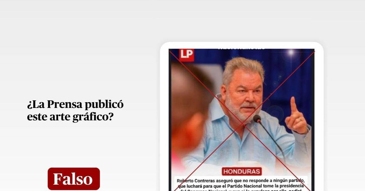 "Roberto Contreras aseguró que no responde a ningún partido, que luchará para que el Partido Nacional tome la presidencia del Congreso Nacional, y que sí lo expulsan por ello, pedirá una alianza con los nacionalistas", dice textualmente en el supuesto arte publicado el 6 de enero de 2026, compartido decenas de veces.