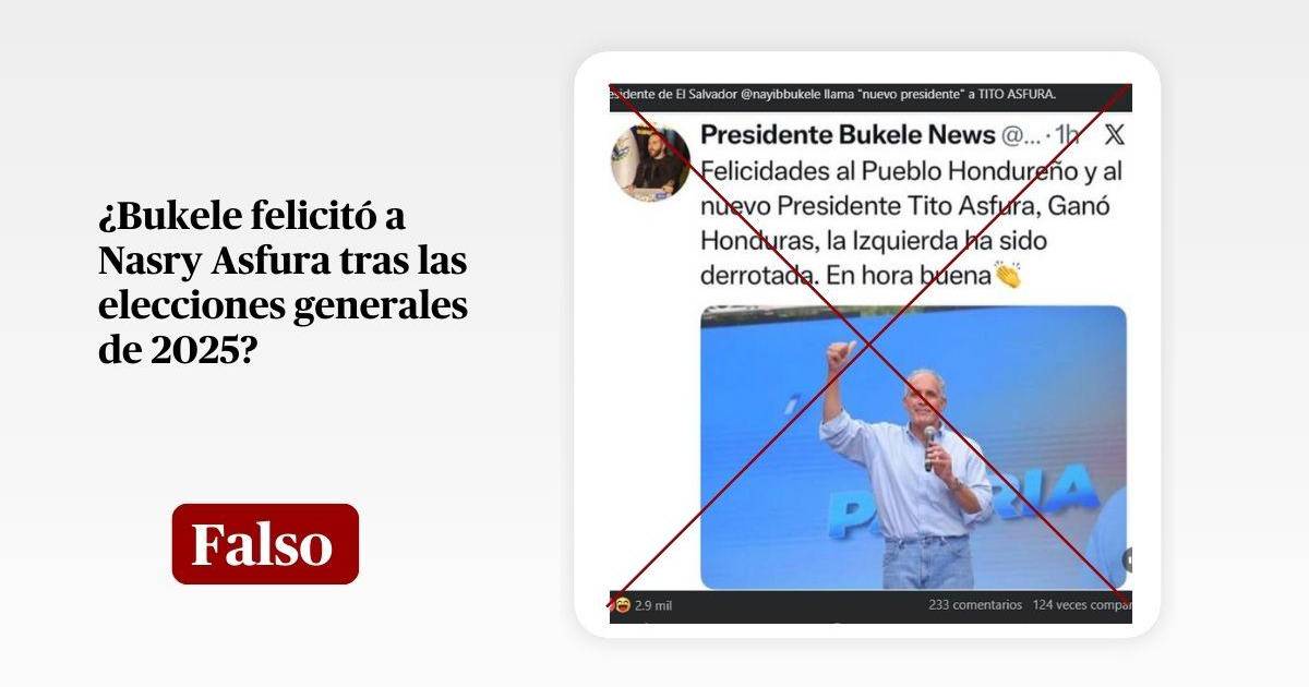 Además, una revisión a la cuenta de X oficial de Bukele no encontró la felicitación del gobernante a Asfura, ni un pronunciamiento relacionado con los comicios generales realizados el 30 de noviembre de 2025.