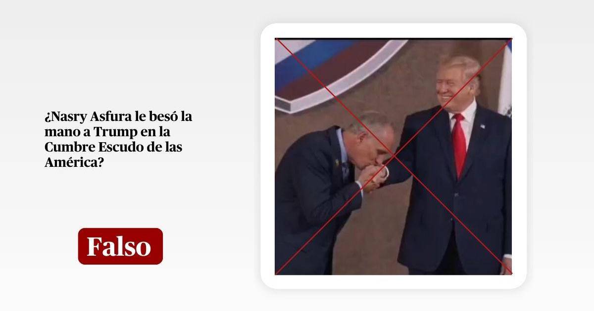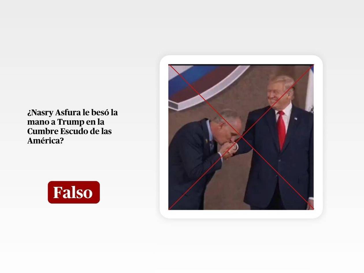 Tegucigalpa, Honduras.- Por las redes sociales se mueven publicaciones que muestran una imagen en la que el presidente Nasry Asfura, supuestamente le besa la mano a su homólogo de Estados Unidos, Donald Trump, durante la Cumbre Escudo de las Américas, celebrada en Miami el 7 de marzo.