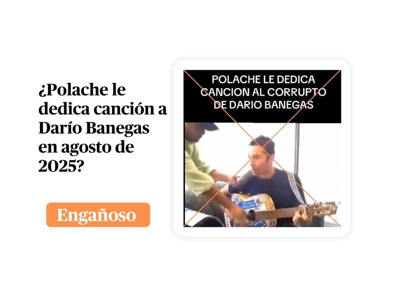 “POLACHE LE DEDICA CANCION AL CORRUPTO DE DARIO BANEGAS”, dice textualmente el texto sobrepuesto en la publicación de TikTok, que cuenta con más de 2,465 visualizaciones desde el 12 de agosto de 2025.