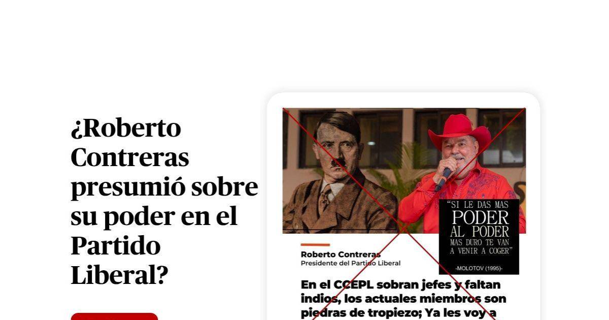 Una búsqueda en Google con los términos clave "Roberto Contreras + yo les voy a demostrar quién tiene el poder + Partido Liberal" no arrojó resultados en medios ni declaraciones que validen la supuesta cita.