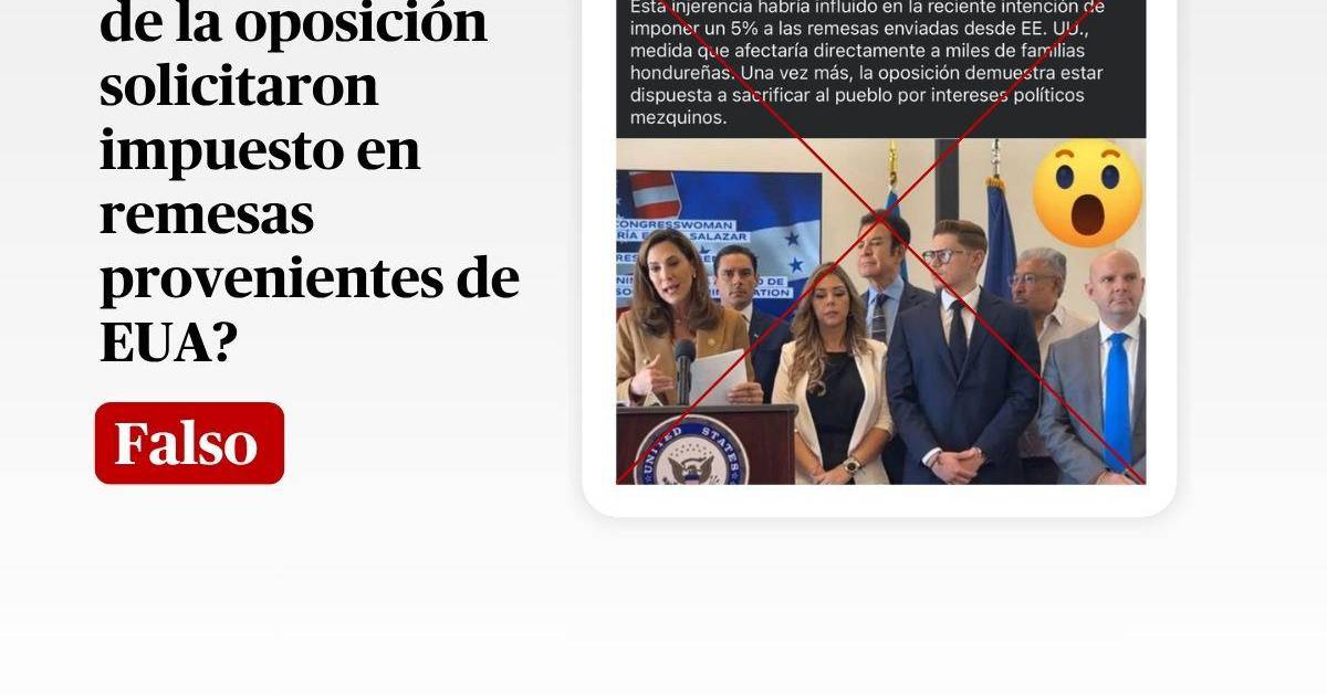 “Reverendos HDP, Liberales y Nacionalistas pidieron impuesto a las remesas. A solicitud de Liberales y Nacionalistas: las remesas tendrían 5% de impuestos”, dice textualmente una publicación en Facebook compartida decenas de veces desde el 13 de mayo de 2025.