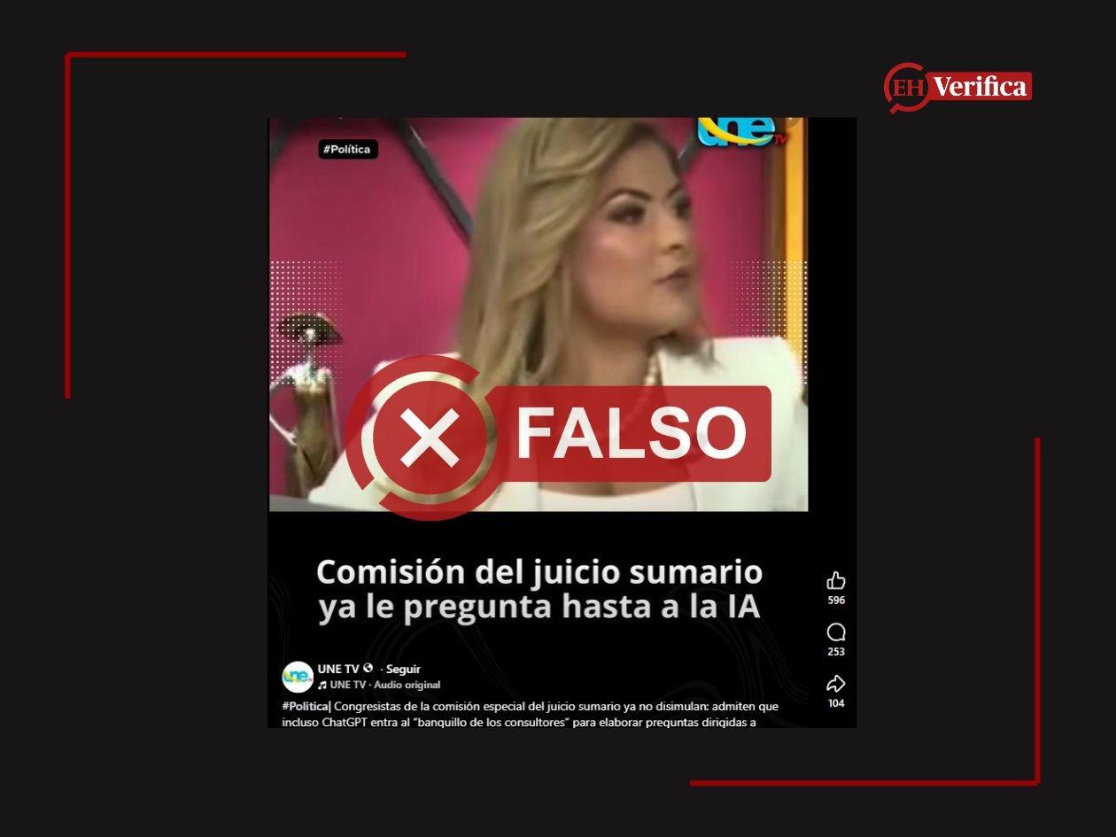 “Congresistas de la comisión especial del juicio sumario ya no disimulan, admiten que incluso ChatGPT entra al "banquillo de los consultores para elaborar preguntas dirigidas a magistrados y fiscales con la intención de impulsar su destitución”, dice textualmente la descripción de una entrada en Facebook, compartida más de 100 veces desde el 14 de abril.