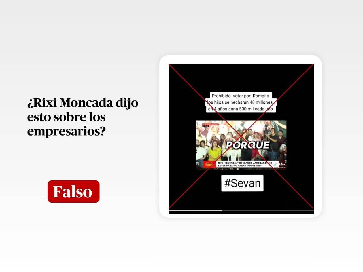 “Somos enemigos de los empresarios, a ellos no los toleramos, yo les hago una recomendación, es mejor que le ayuden al presidente del Congreso aprobar esa Ley de Justicia Tributaria, porque si no se aprueba en este periodo lo que viene tiene que ser mucho más fuerte y más contundente, a ellos no los toleramos los consideramos enemigos de los empresarios” se escucha decir a Moncada en una publicación de TikTok difundida el 3 de octubre de 2025 y que cuenta más de 270 visualizaciones.