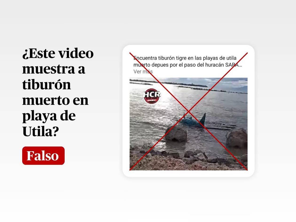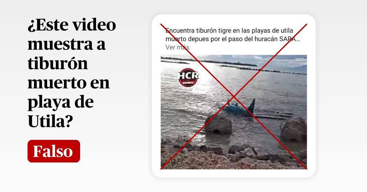 “Encuentran tiburón tigre en las playas de utila muerto depues por el paso del huracán SARA”, se lee literalmente en una publicación de Facebook que ha sido compartida decenas de veces desde el 17 de noviembre de 2024.