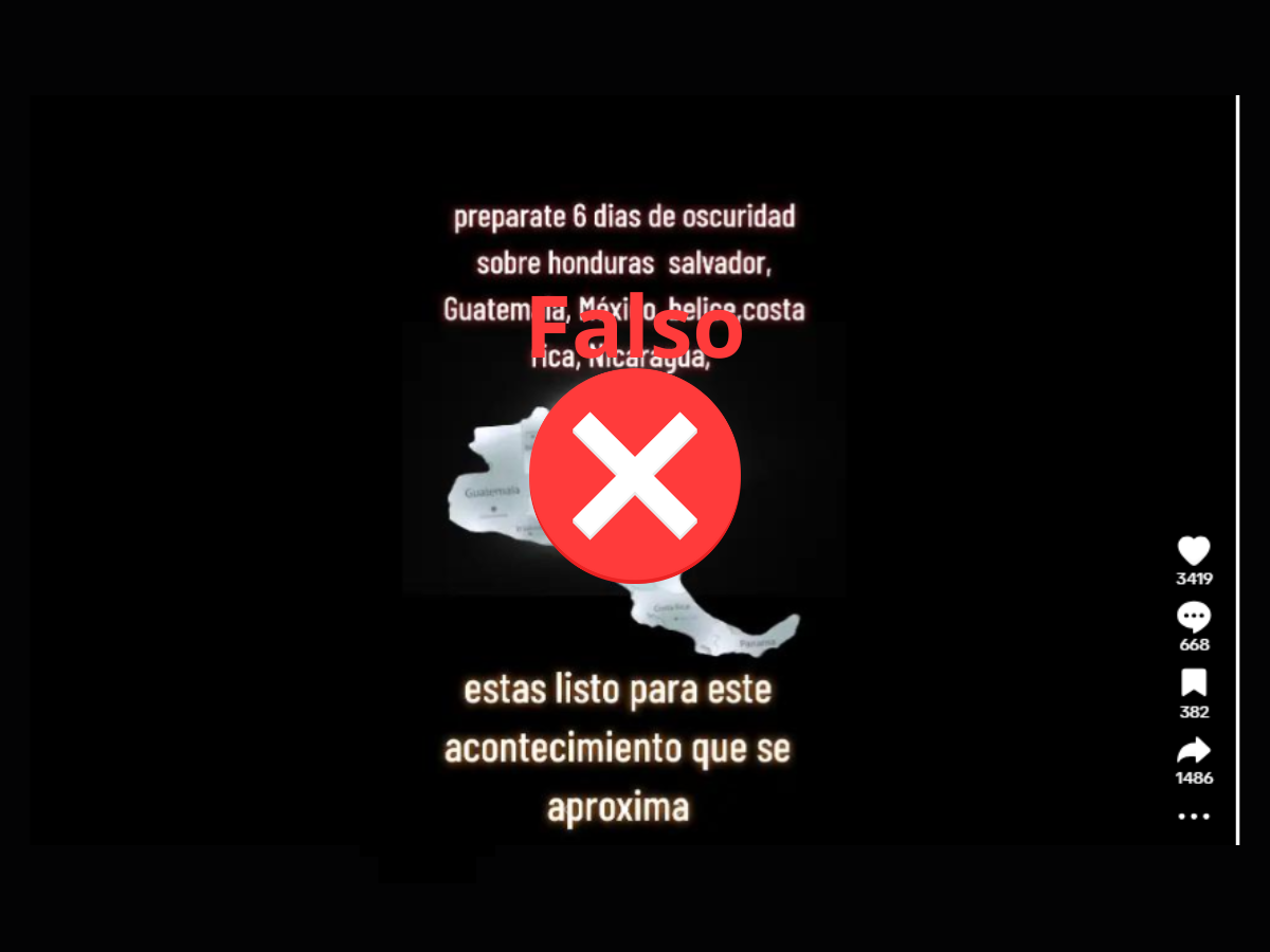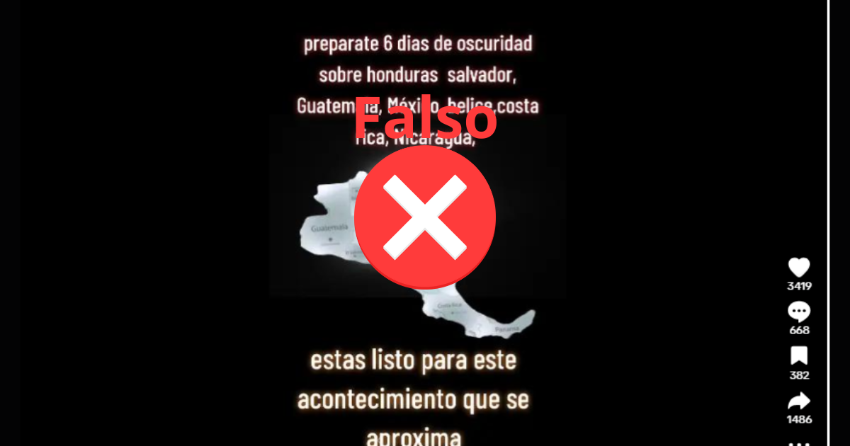 TEGUCIGALPA, HONDURAS.- Circula en TikTok una publicación, acompañada por un mapa de Centroamérica, que afirma que Honduras, El Salvador, Guatemala, México, Belice, Costa Rica y Nicaragua estarán en oscuridad por seis días.