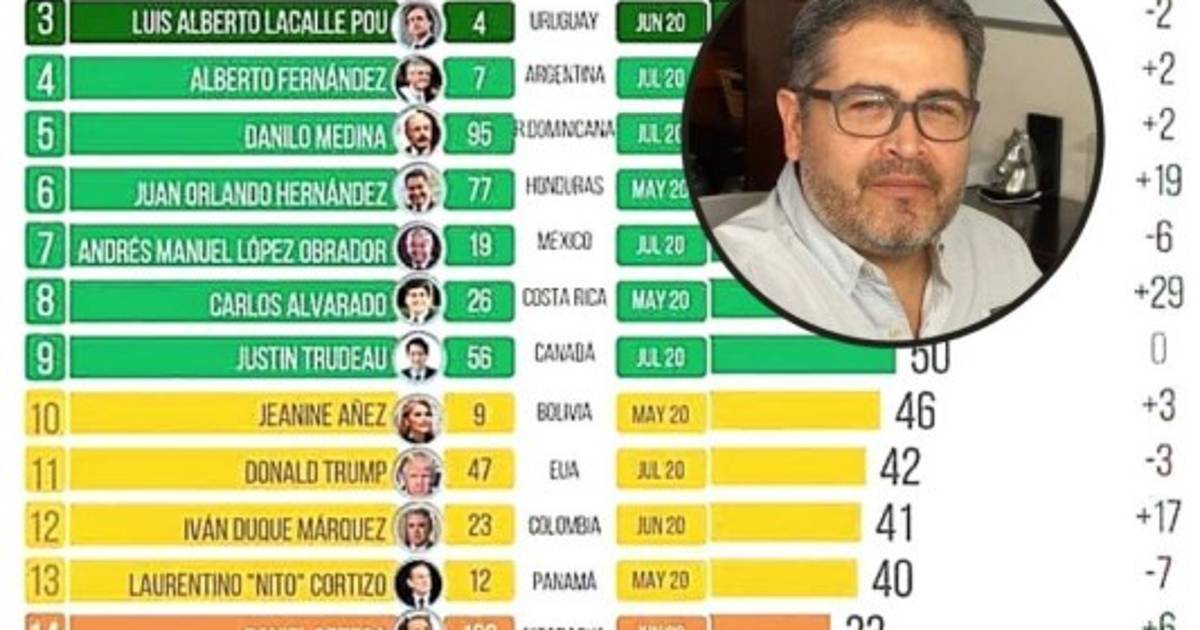 “Hernández aparece en el sexto lugar, solo superado por Danilo Medina, de República Dominicana, que es quinto (54%); Alberto Fernández, de Argentina, cuarto (59%); Luis Alberto Lacalle Pou, de Uruguay, tercero (63%); Martín Vizcarra, de Perú, segundo (65%), y Nayib Bukele, de El Salvador, en el primero (84%)”, continúa.