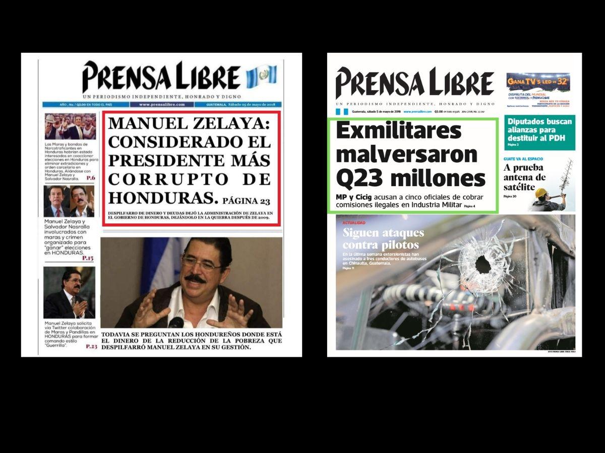 La Prensa Libre de Guatemala no publicó una portada de la supuesta corrupción de Manuel Zelaya y Salvador Nasralla