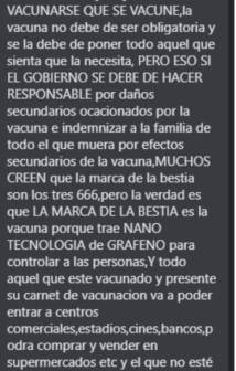 Asimismo, mencionan que el grafeno en las vacunas supuestamente estaría interfiriendo con los campos electromagnéticos del cuerpo, algo que se habría patentado en un estudio de Shangai.