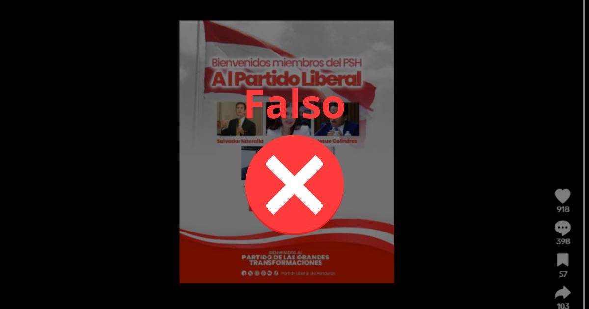 Por lo tanto, el arte atribuido al Partido Liberal con el que supuestamente le dio la bienvenida a Nasralla y a otros miembros del PSH es falso.