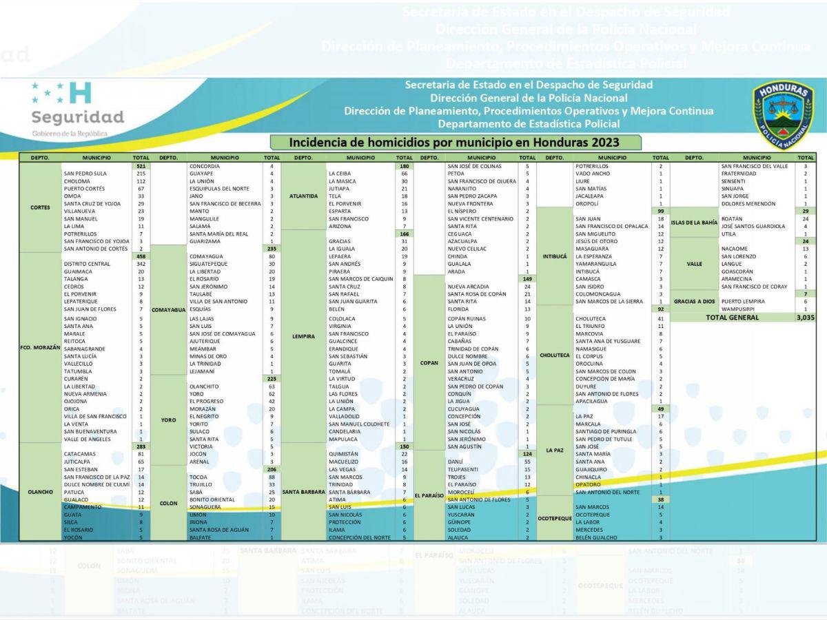 Los números del Sistema Estadístico Policial en Línea (Sepol) muestran que son 46 municipios, los que al cierre del 31 de diciembre de 2023, no tuvieron reportes de homicidios, contrario a los 48 que afirmó la mandataria.