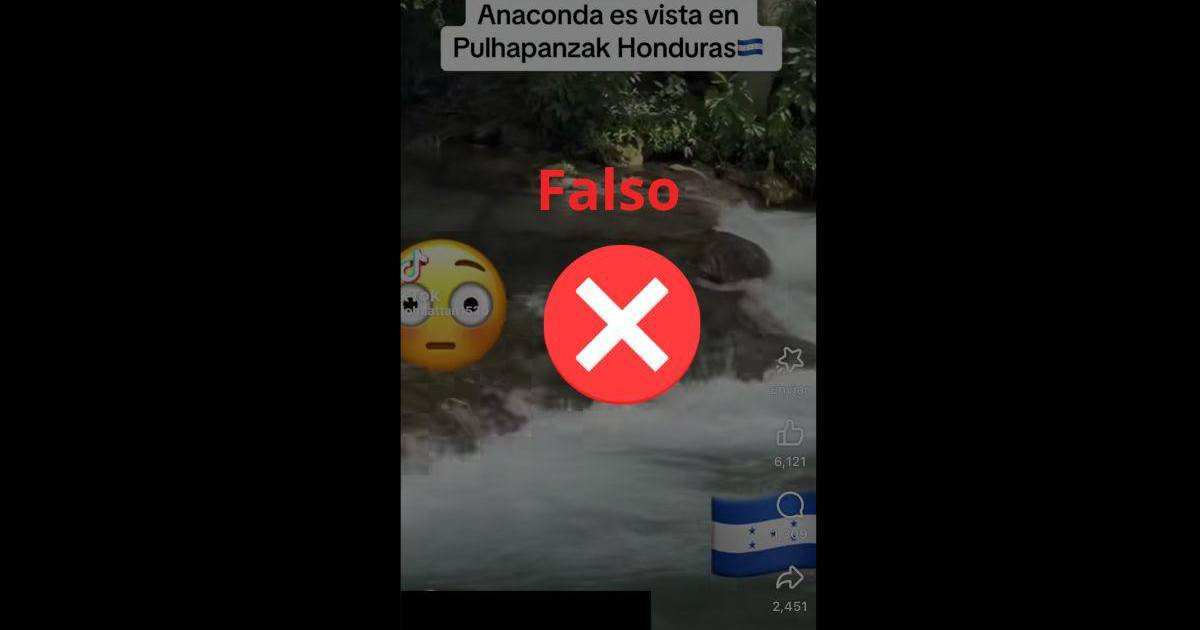 TEGUCIGALPA, HONDURAS.- Es falso que una anaconda fue grabada en un río de Pulhapanzak (en el norte de San Pedro Sula), a pesar de que usuarios así lo afirman en Facebook y TikTok, puesto que la secuencia corresponde a Brasil.