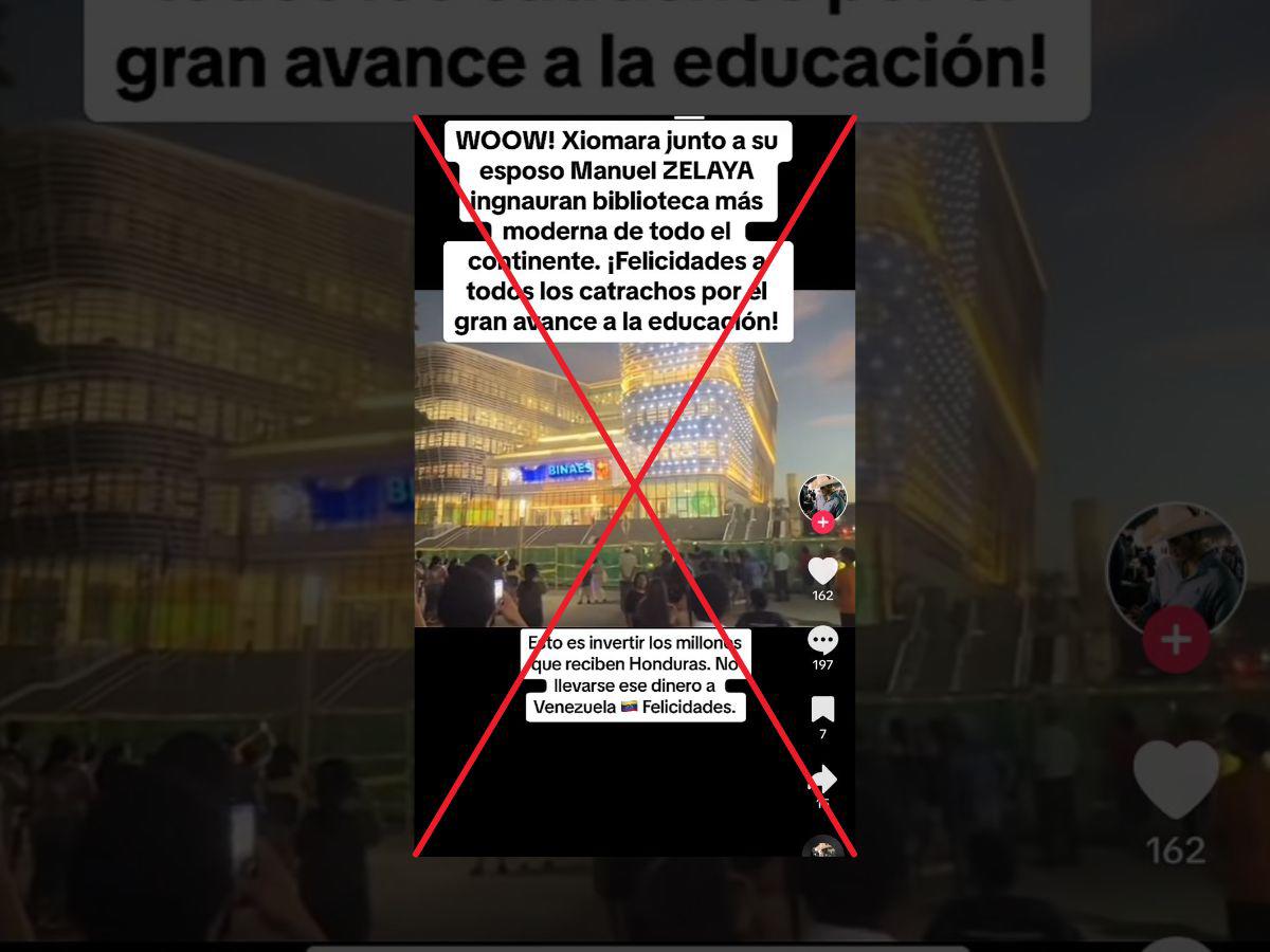 “¡Woow! Xiomara junto a su esposo Manuel Zelaya ingnauran biblioteca más moderna de todo el continente. ¡Felicidades a todos los catrachos por el gran avance a la educación!. Esto es invertir millones que reciben Honduras. No llevarse ese dinero a Venezuela, felicidades”, dice la descripción que está sobre el vídeo que ha sido visualizado más de 26,000 veces desde el 16 de noviembre de 2023.