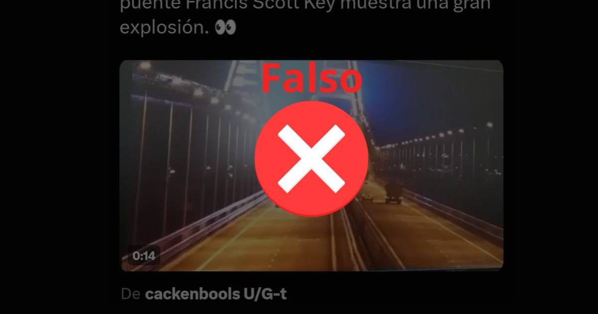 Sin embargo, es falso. El puente Francis Scott Key de Baltimore cayó por el choque de un barco. La secuencia, en realidad, corresponde a la explosión de un puente de Crimea, Rusia, en octubre de 2022.
